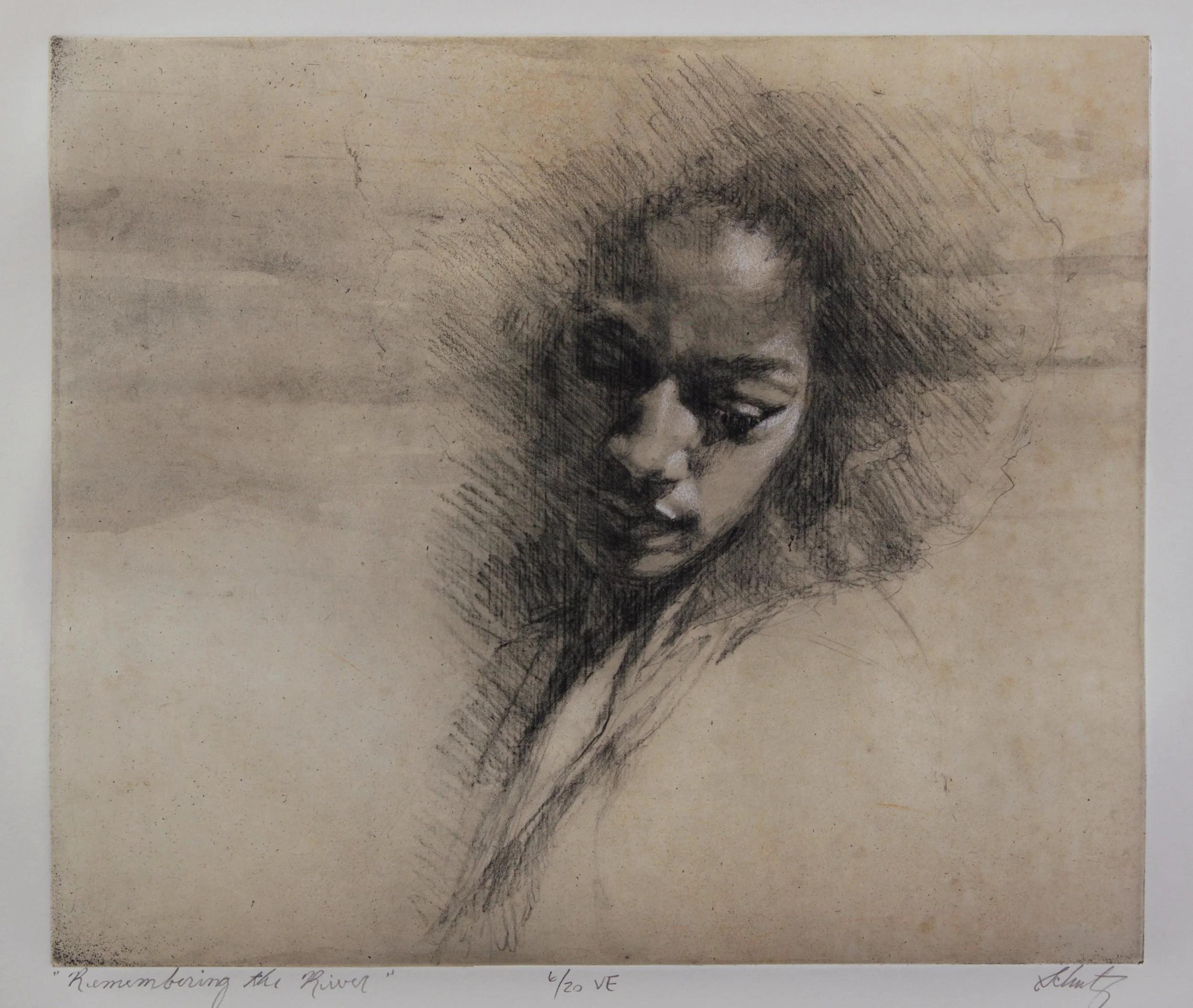 Suzy Schultz brings the perspective of a visual artist who uses both painting and drawing to explore the human form and the quiet drama of everyday life. Renowned for her evocative treatment of her subjects, Schultz uses modern cliché verre methods to translate her fluid, painterly drawings into etchings on light-sensitive polymer surfaces. Her process preserves the immediacy of the hand-rendered mark while imbuing it with the rich, ink-laden depth of printmaking. In her work, the ephemeral nature of an illustration is recast as a timeless, iconic impression.